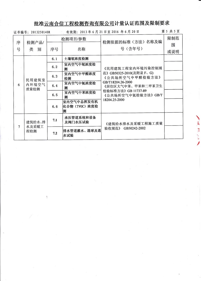 云南合信工程檢測咨詢有限公司建筑給水排水、采暖工程相關(guān)檢測能力:
