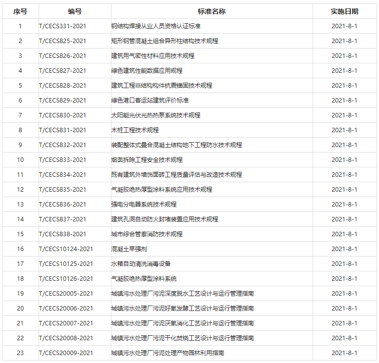 2021年8月開始實(shí)施的工程建設(shè)標(biāo)準(zhǔn)
