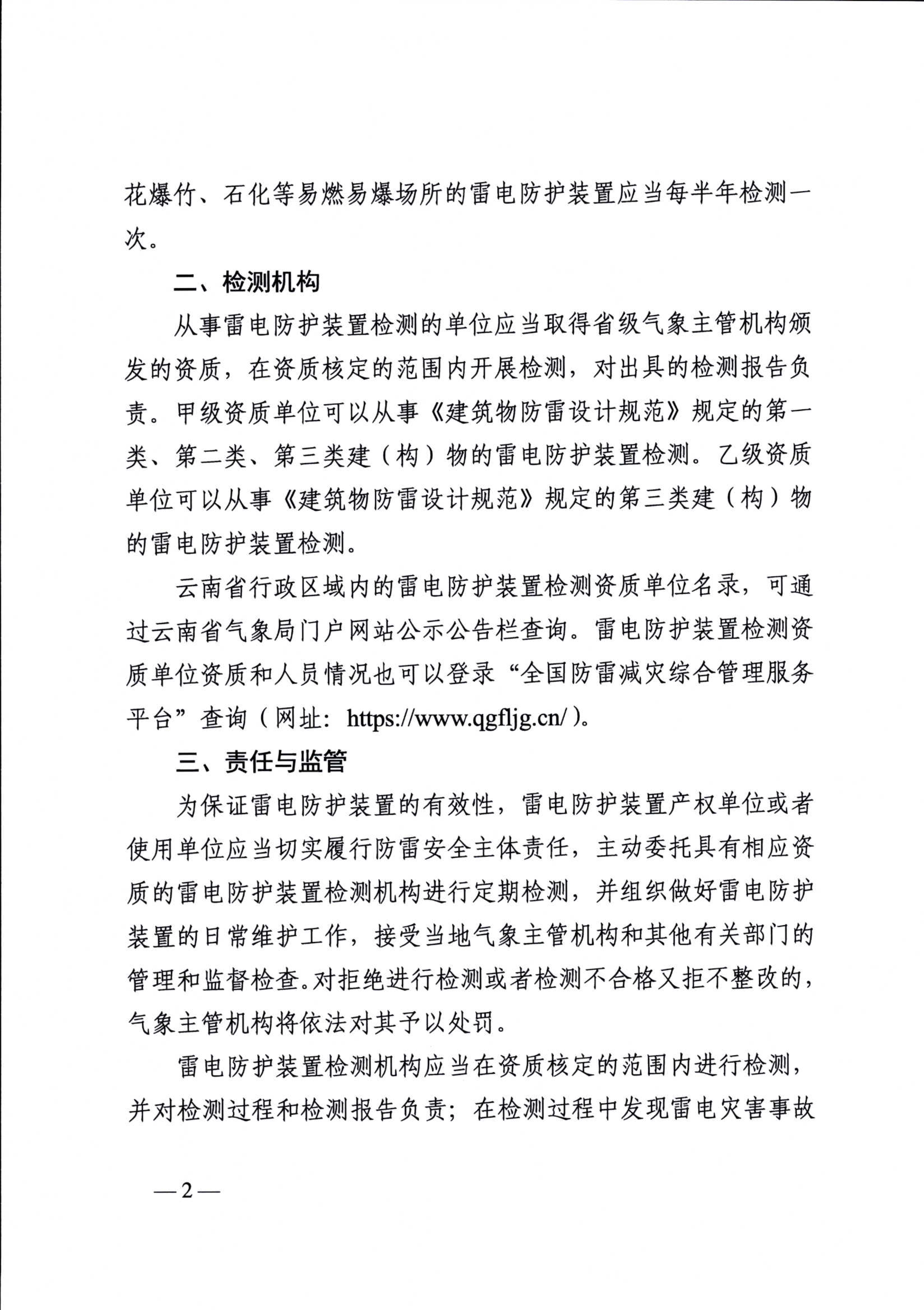 云南省氣象局關于做好2022年度雷電防護裝置檢測工作的通知