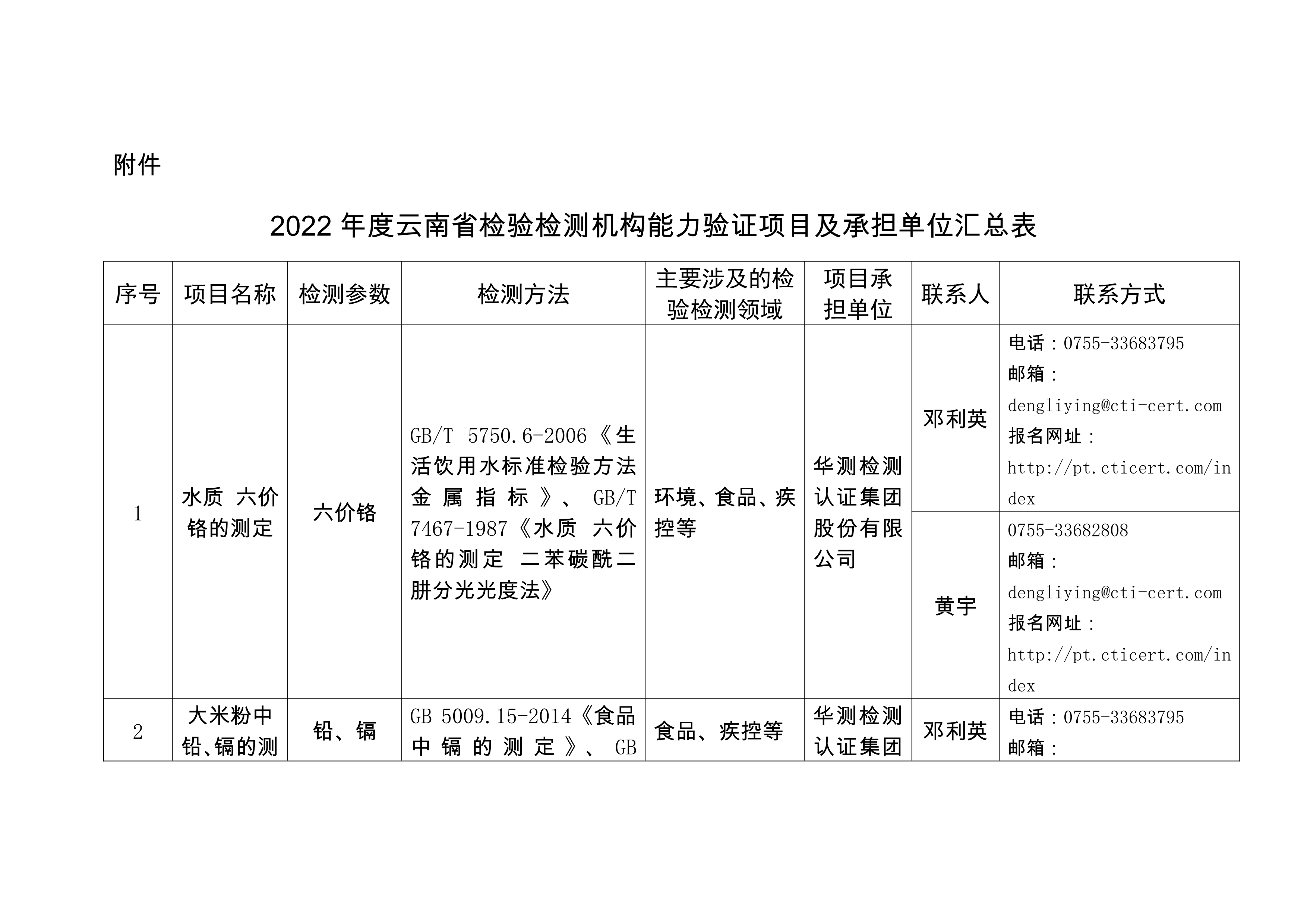 附件:2022年度云南省檢驗(yàn)檢測機(jī)構(gòu)能力驗(yàn)證項(xiàng)目及承擔(dān)單位匯總表