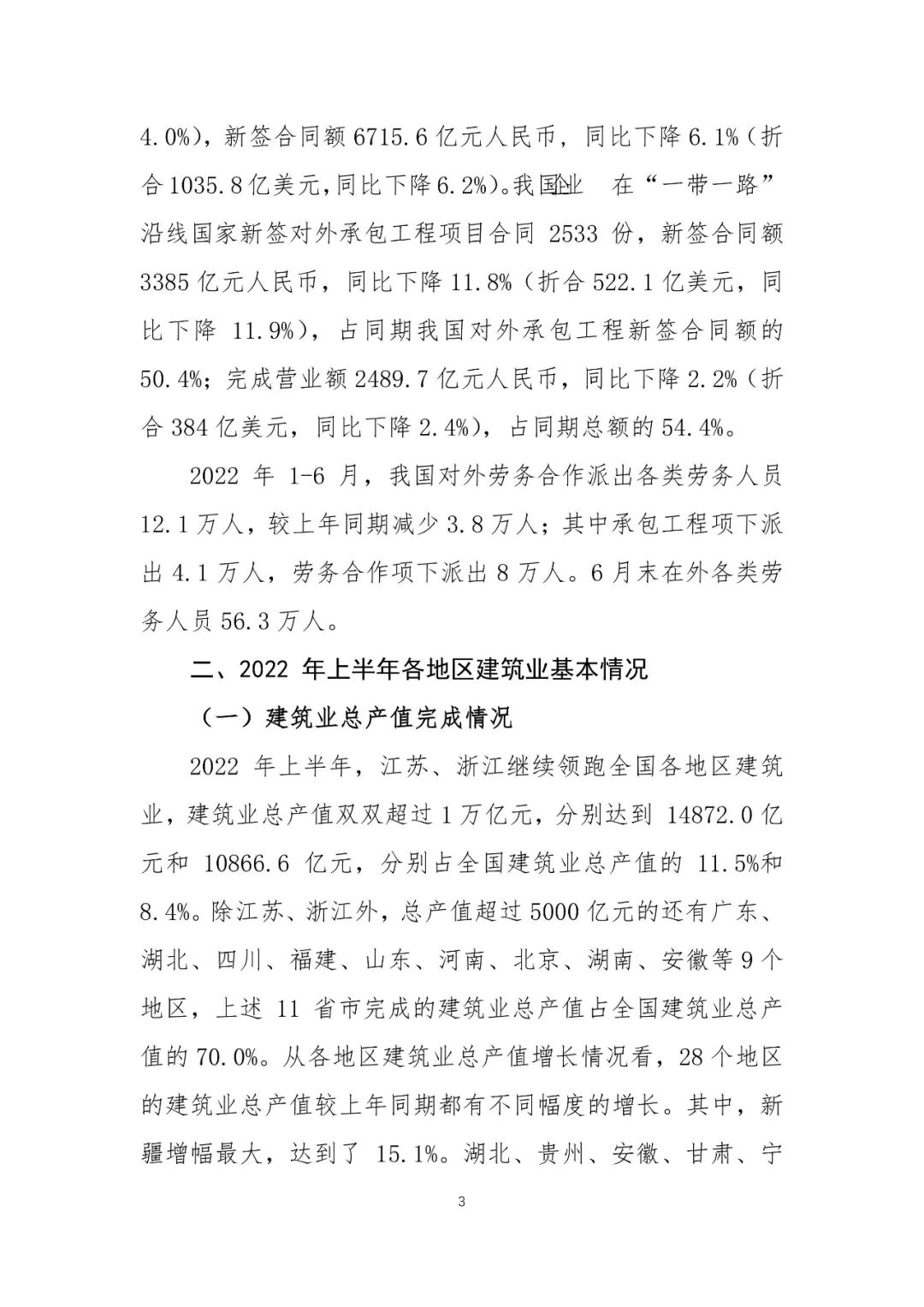 2022年上半年建筑業(yè)發(fā)展統(tǒng)計(jì)分析